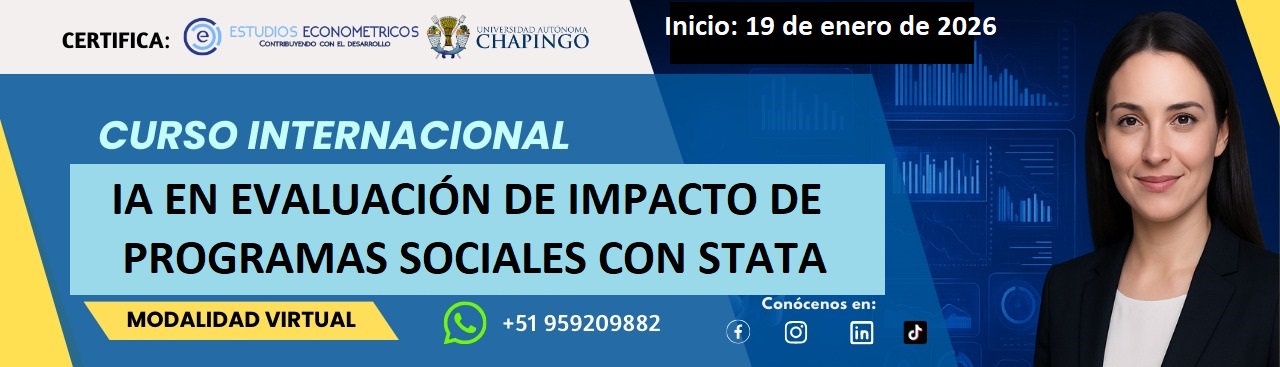 CURSO INTERNACIONAL VIRTUAL : IA EN EVALUACIÓN DE IMPACTO DE PROGRAMAS SOCIALES CON STATA (Inicio: 19 enero 2026)